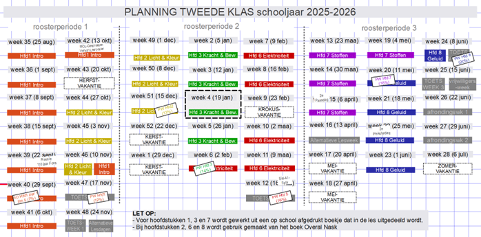 Hieronder zie je welke hoofdstukken we dit jaar behandelen en in welke volgorde. Ook staat er bij hoe zwaar de toetsen van dit jaar meetellen voor je eindcijfer. Voor meer detail kun je deze studieplanner raadplegen: